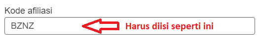 Dan pada Pengisian Formulir Buka Akun di Langkah 3, Pastikan KODE AFILIASI Diisi seperti gambar berikut ini: